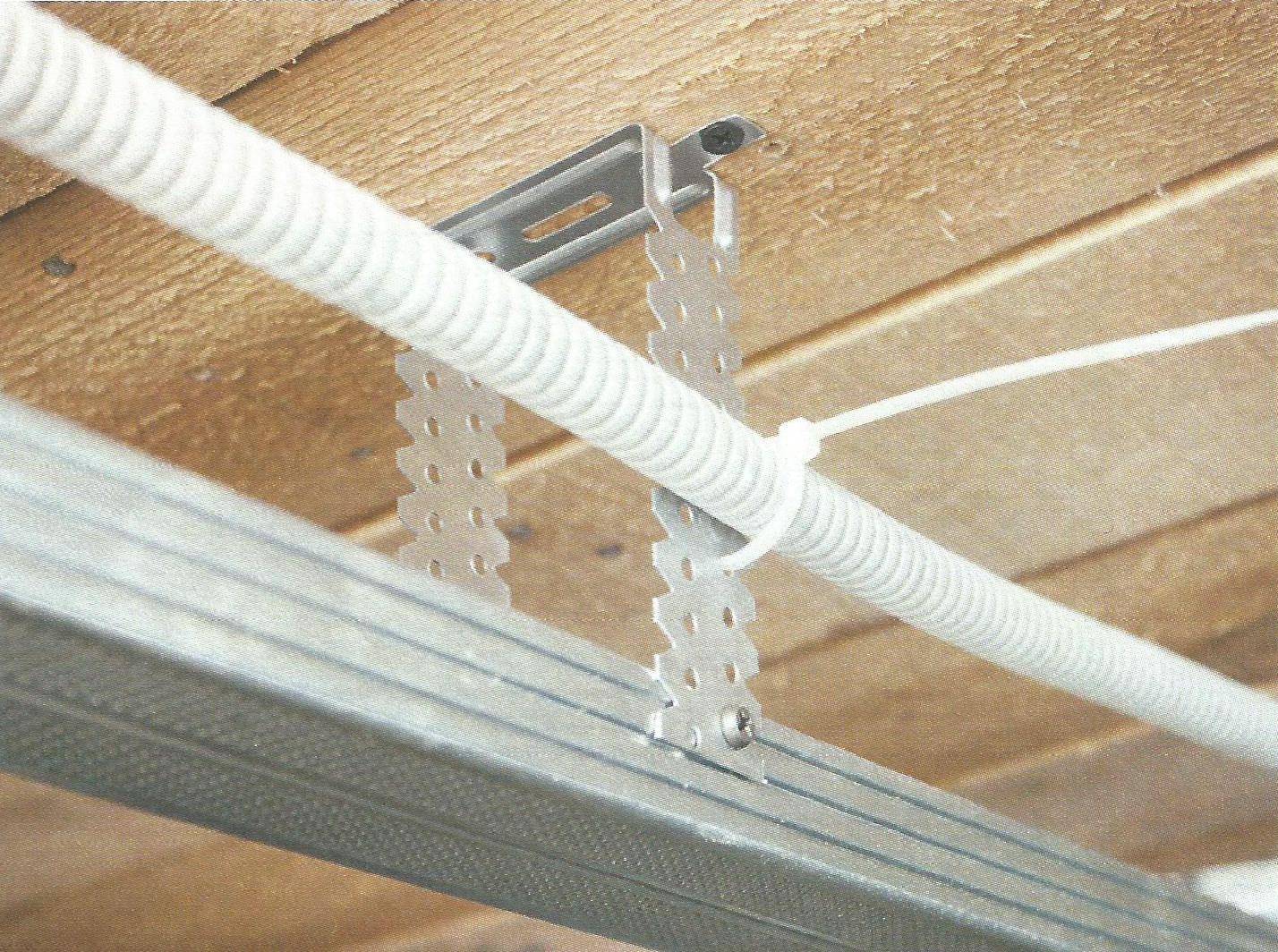 Нужна ли защитная трубка при монтаже кабеля на металлическом профиле обрешётки? Если кабель по всей длине целый и не имеет повреждений изоляции, можно обойтись без защитной трубки привязывая коммуникации пластиковыми стяжками к профилю или выполняя крепление к черновому потолку.