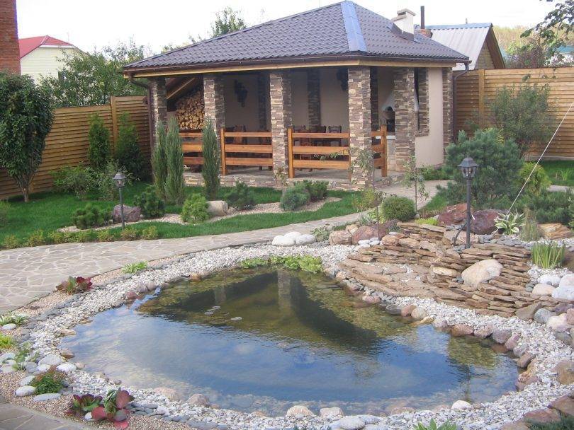 Обязательно сделайте мощеную площадку возле одного из берегов, чтобы обеспечить подход к воде. Людмила Светлицкая