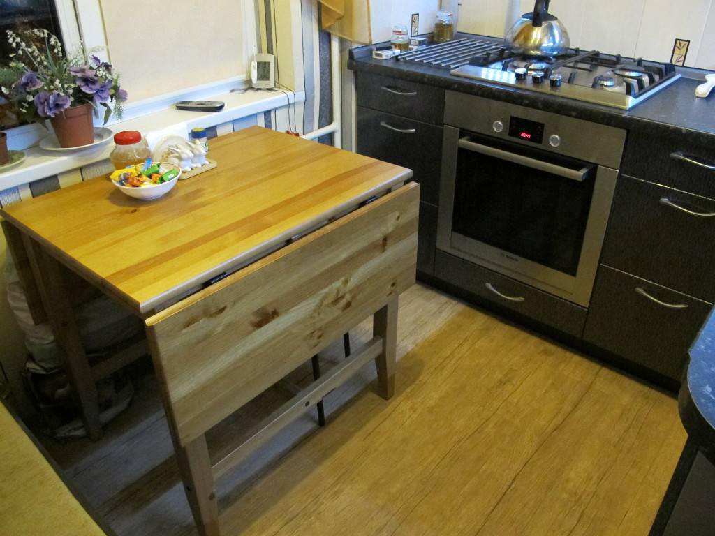 Откидной стол для маленькой кухни удачно впишется в интерьер.