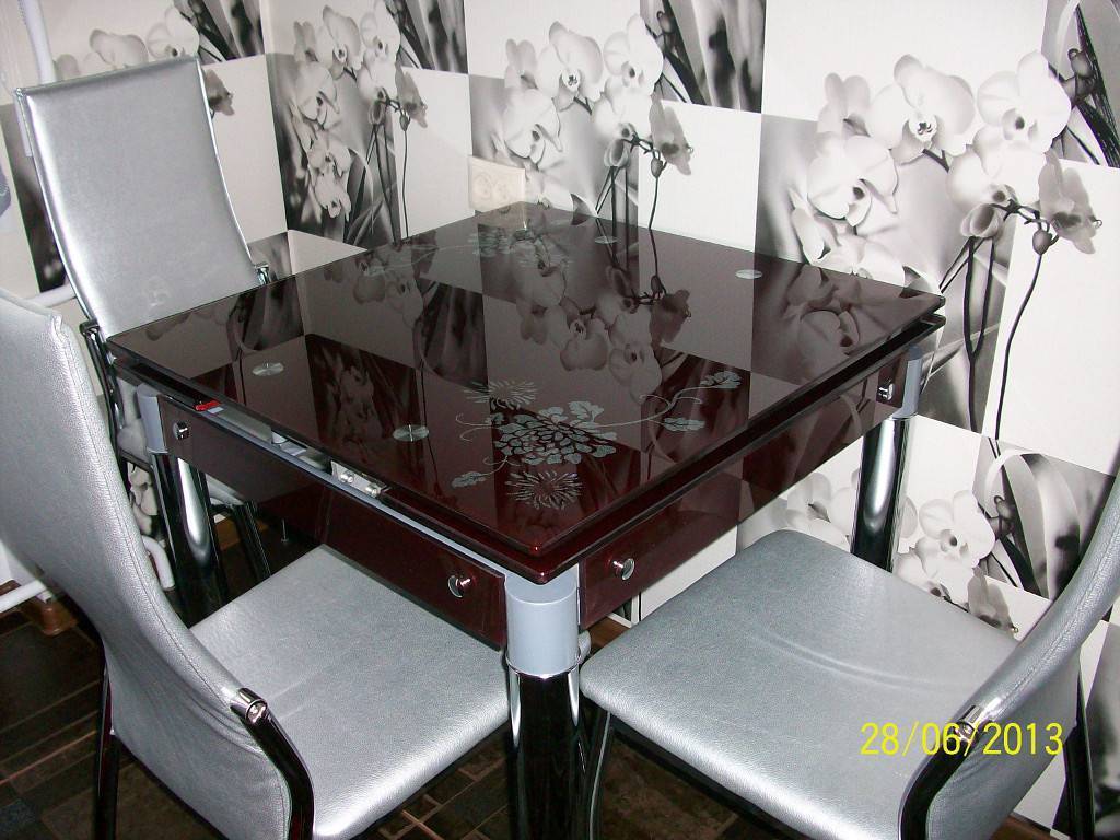 - Стол с прозрачной столешницей способен стать настоящим украшением кухни, ее изюминкой.