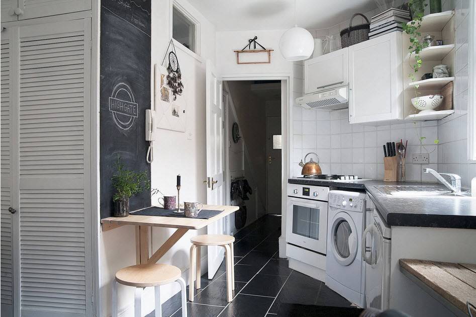 Чтобы сэкономить пространство, раскладной обеденный стол для маленькой кухни – идеальное и самое оптимальное решение.