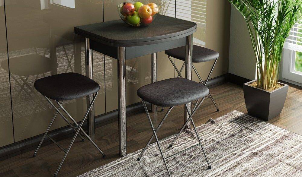 Для самых маленьких кухонь подойдут складные табуреты. Сразу после обеда их можно сложить и убрать в шкаф.