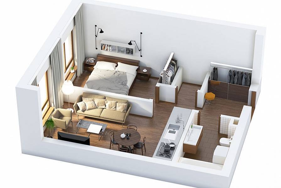 м), важно правильно подобрать мебель и расставить акценты, чтобы максимально сохранить свободное пространство