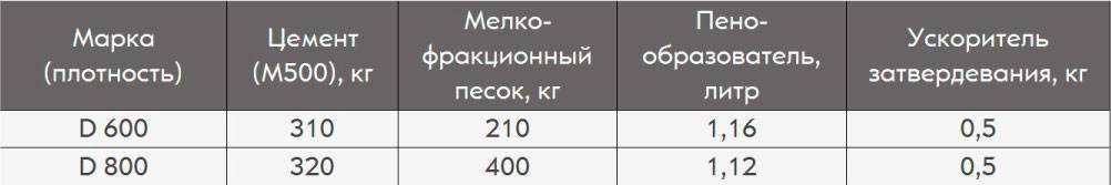 Таблица пропорций компонентов состава популярных марок D600 и D800: