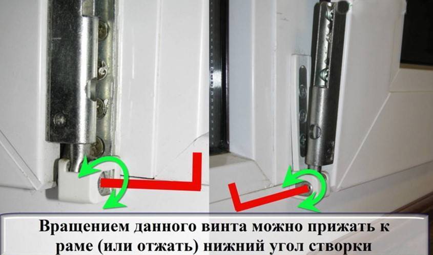 Регулировка нижней петли пластикового окна или двери