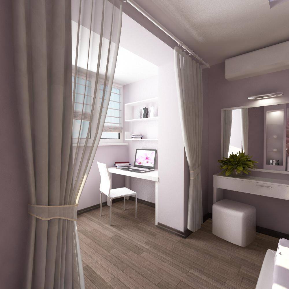 - это два полностью автономных помещения, комната которая примыкает к балкону становится проходной, и два эти пространства имеют абсолютно разный интерьер;