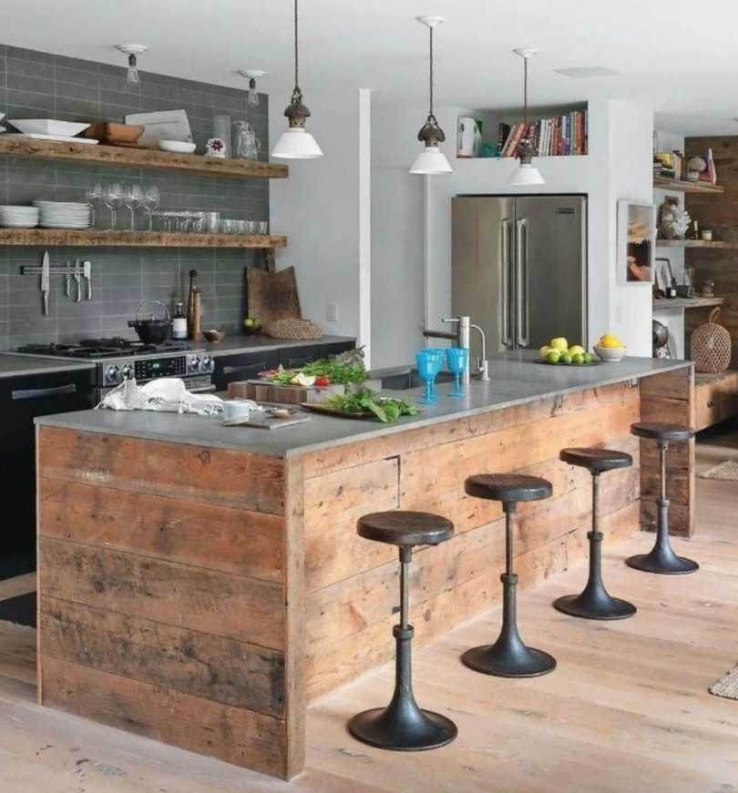 горизонтальные линии – этот аспект современного дизайна можно часто увидеть в планировке кухонной мебели, они должны использоваться при организации острова или установке открытых стеллажей;