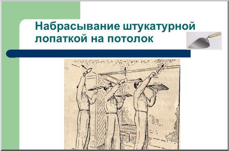 Первый слой материала называется «обрызг». Он нужен для того, чтобы контакт потолка с основными слоями был более плотным. Для этого разведенную штукатурку просто разбрасывают на поверхность. Идеально выравнивать не нужно, главное, чтобы на поверхности не осталось проплешин. После нанесения нужно подождать, пока материал схватится. В зависимости от вяжущего вещества на это может потребоваться от 30 минут до 24 часов.