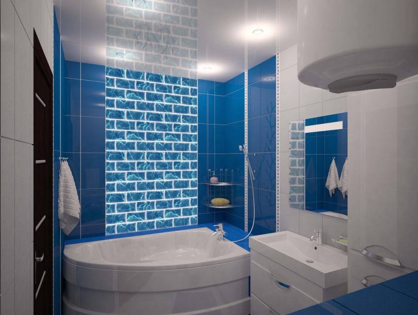 - на потолке желательна установка нескольких светильников — они располагаются так, чтобы в ванной не было затененных зон. Здесь работает простое правило — чем больше света, тем визуально большим кажется пространство;