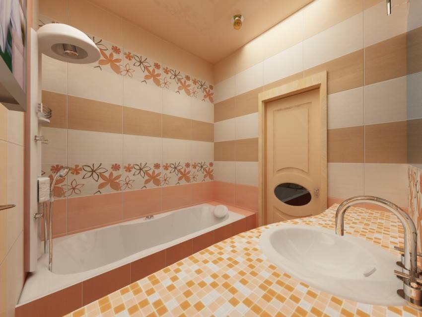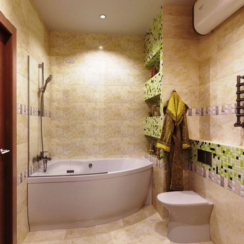 - хорошим решением будет зонирование пространств, например, выделить часть стены над ванной другим оттенком плитки;