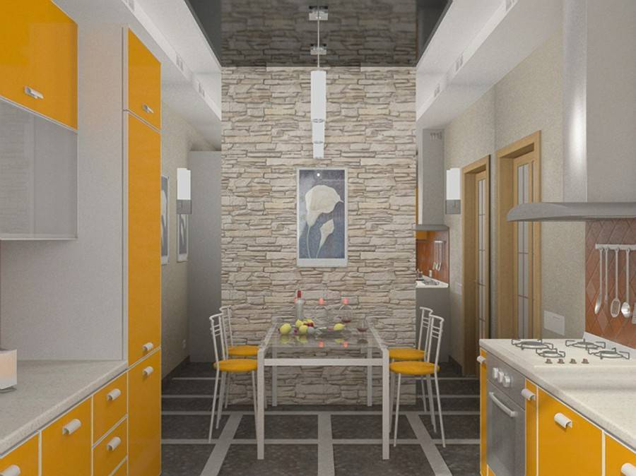 Для пола можно выбрать плитку либо наливной пол. И в первом, и во втором случае стоит избегать сложных рисунков, которые на фоне ограниченного пространства внесут в интерьер ощущение тяжести и загроможденности. Можно выложить плитку шахматкой, подобрать оформление под доску либо дорогой камень.