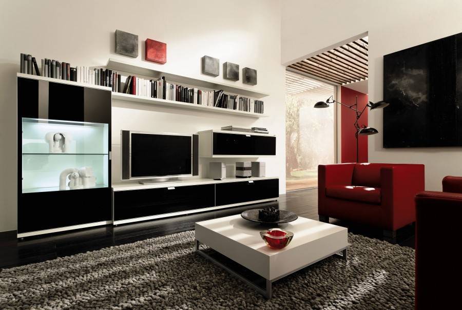 - вместо закрытой корпусной мебели – легки двухсторонние стеллажи и этажерки, которые используют в зонировании как перегородки.