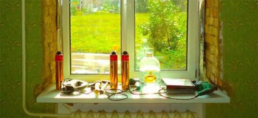 На следующем этапе конструкцию нужно зафиксировать монтажной пеной, равномерно заполняющей зазор. Перед распылением баллон слегка нагревают. Так пена становится более эффективной, лучше проникает в пустоты.