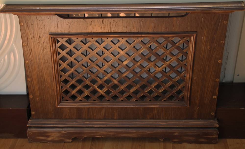 Чаще в жилом помещении устанавливают декоративные решетки для батарей отопления. Они не должны препятствовать циркуляции воздуха возле отопительного прибора и быть изготовлены из материалов, устойчивых к воздействию высоких температур. Конструкцию ставят на пол или закрепляют на стене.
