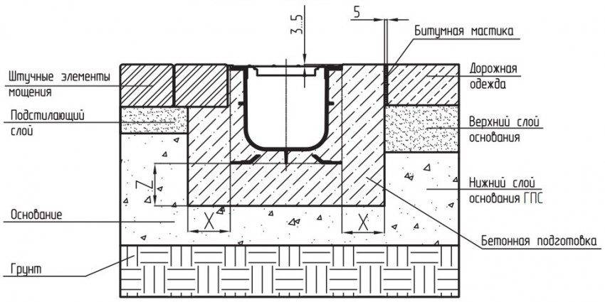 - поверхность решетки лотка должна находиться ниже твердой поверхности на 3-5 мм.