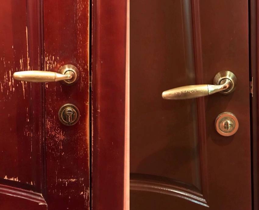 Металлические двери также имеют свойство морально и физически устаревать. Задавшись целью их обновить, учтите, что подход и способы будут разными для внешней и внутренней части входной двери.