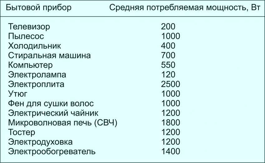 - Необходимо подсчитать общую мощность потребителей. Надо понимать, что маловероятно одновременное включение всех светильников, нагревателей и других приборов.