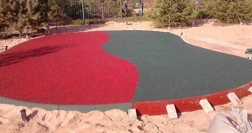 Составы с битумом меньше подходят для изготовления бесшовной резиновой поверхности.