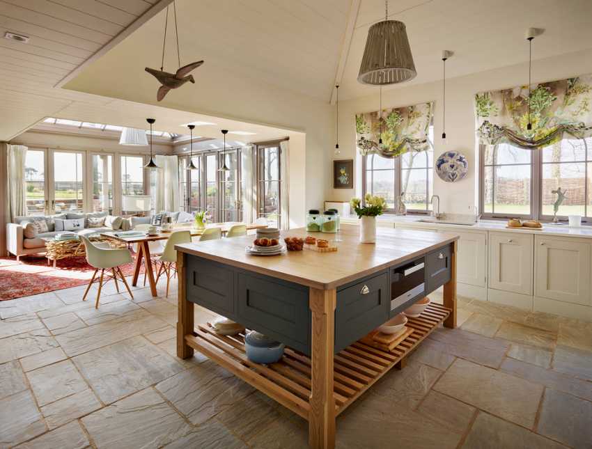 Применяя полосатый принт, можно не только украсить интерьер, но и откорректировать размеры и форму кухни