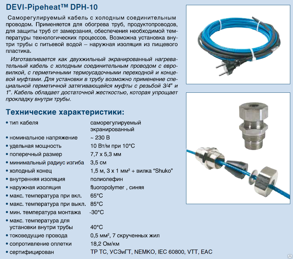 Отличительной чертой кабеля является высококачественная матрица LongLife. Благодаря ей самогреющий кабель может применяться без терморегулятора.