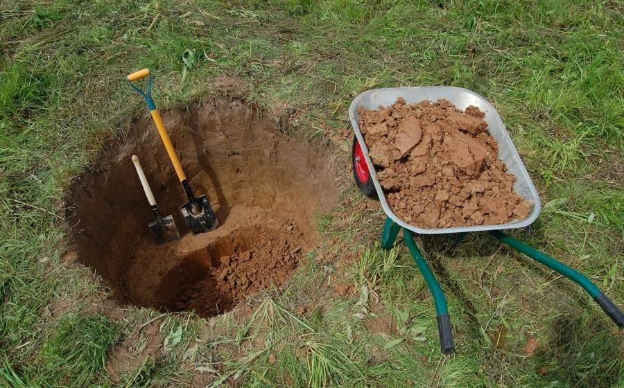- Проектирование, выбор места, рытье котлована в соответствии с объемами конструкции, засыпка слоя песка толщиной в 20 сантиметров, трамбовка.