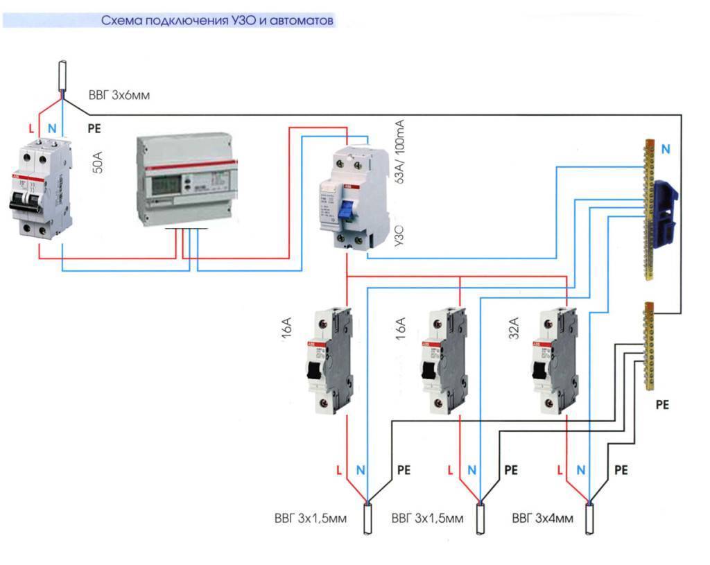 Важно избежать ошибки при подключении, при которой дифференциальный ток в УЗО получается сам собой. К примеру, иногда «ноль» от защищаемой УЗО группы выводят мимо него сразу на общую нулевую шину