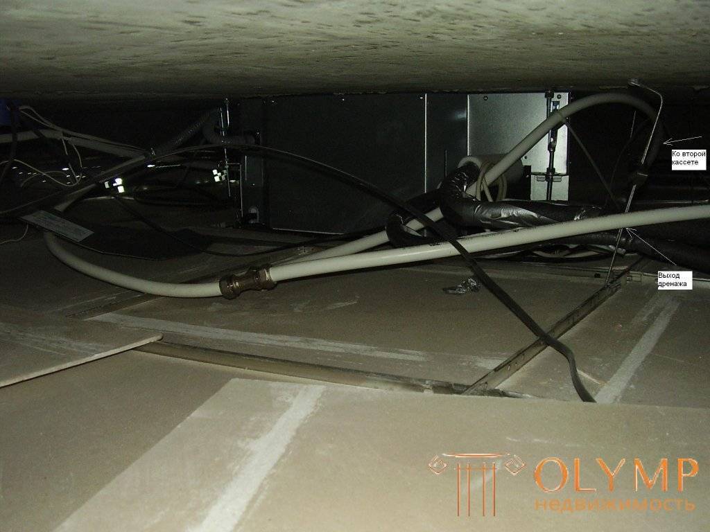 Очевидно, что спутанные, брошенные как попало, дренажные трубы этих кассетных блоков не позволят безболезненно удалять конденсат. Вода будет литься из блоков прямо в помещение, вызывая порчу имущества и нервов