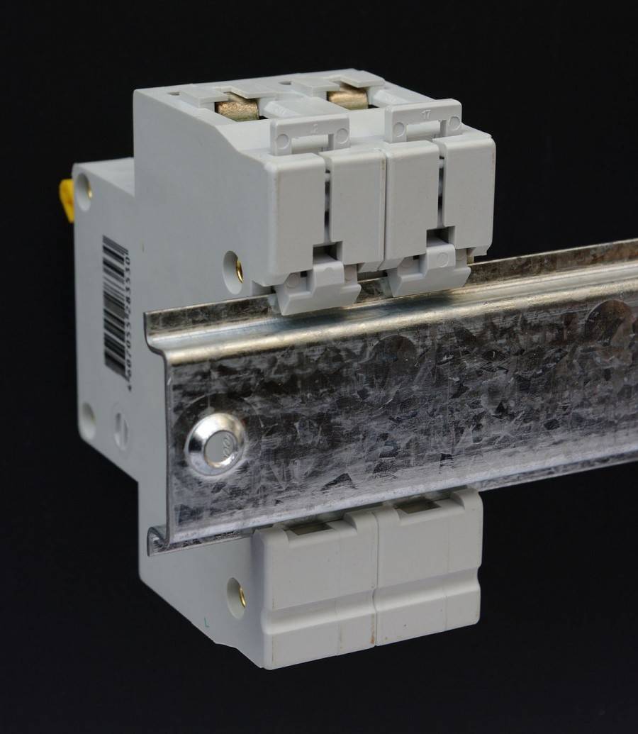 Для крепления электрооборудования модульной серии винтики не потребуются. Все они устанавливаются на стандартную металлическую планку. Называется она – дин рейка, разберемся, что это такое.