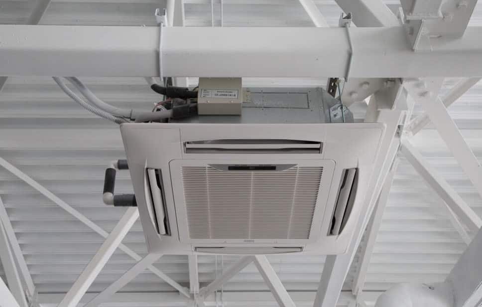 Фанкойл кассетного типа, установленный на производстве.