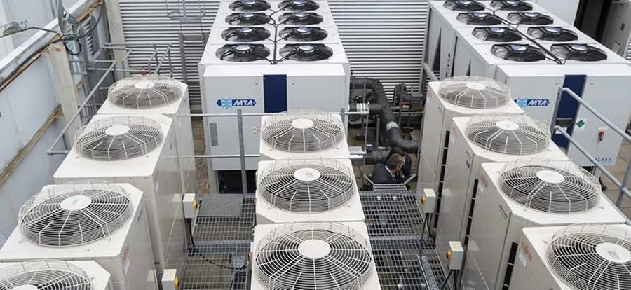 - В качестве основной приточной установки для оснащения торгового центра может использоваться центральный кондиционер, который имеет функциональную возможность подавать как охлажденный, так и подогретый воздух. Такие агрегаты собираются под заказ с определенными требованиями и техническими характеристиками. Центральный кондиционер имеет модульную структуру, в которую входят отдельные блоки: секция с вентиляторами, блок охлаждения, модуль нагрева воздуха. Кроме того, в нем обычно находятся блоки фильтрации, шумоподавления и увлажнения. Конструкция центрального кондиционера предполагает наличие внешнего модуля, поэтому их используют совместно с чиллер-фанкойлами, установленными на крыше здания.Это оборудование имеет множество преимуществ: они полностью безопасны, имеют возможность регулировки температуры выходящего воздуха, отдельно в каждой зоне, и не имеют никаких ограничений по длине воздуховодов.