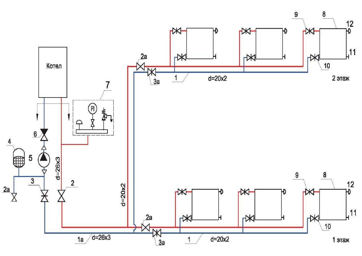 Стандартная схема разводки системы отопления в двухэтажном доме