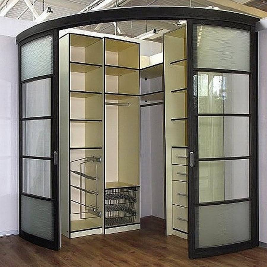 Фото угловых предметов интерьера с правильной и оптимальной планировкой можно просмотреть ниже. Они могут обладать разной высотой, но стандартно для шкафов данный показатель равен 2 метра. Также глубина может значительно отличаться, поэтому учитывается, какое количество различных предметов планируется укладывать на полки или навешивать на плечики. Многофункциональность каждого предмета интерьера зависит от его наполнения, поэтому этот момент должен изучаться заранее. Допускается изменять системы хранения шкафа самостоятельно, для чего приобретаются специальные элементы, устанавливаемые вместо стандартных полок, ящиков или иных предметов.