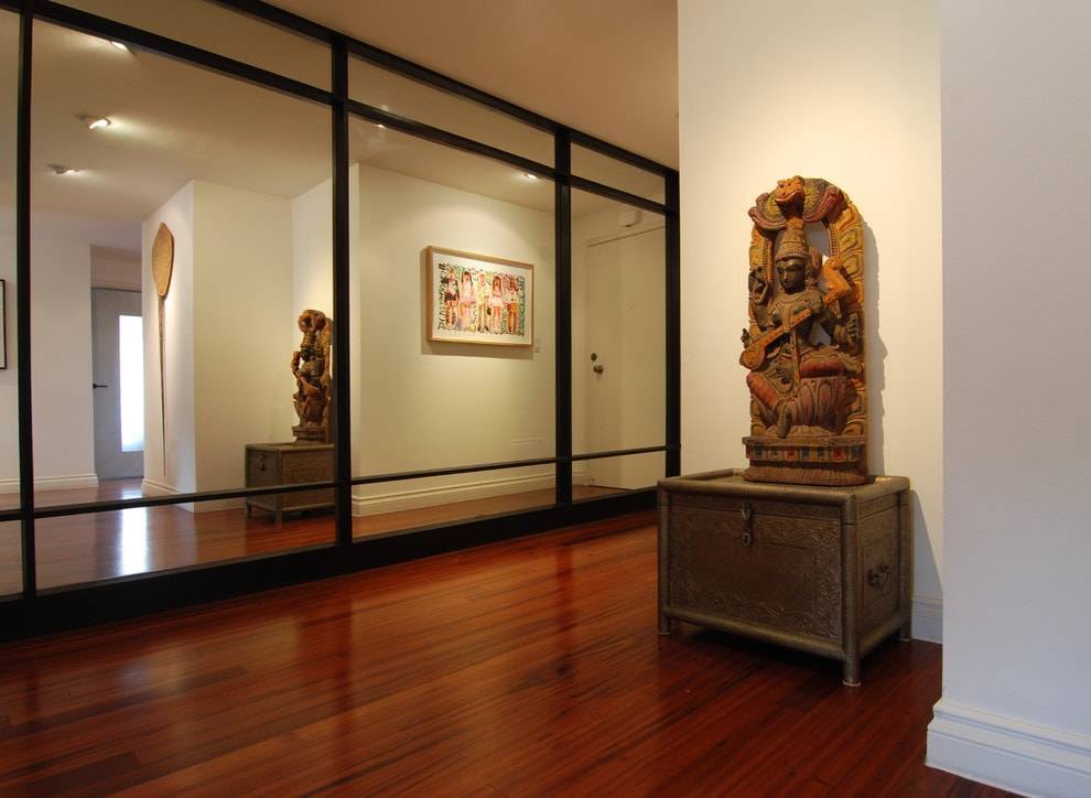 Не надо поражать гостей обилием картин, масок, можно обойтись несколькими, в зависимости от размеров прихожей. Для освещения использовать бра под общий стиль прихожей, стильные настольные лампы. Люстра, конечно, может быть, но не театральных размеров. Бра или настольных ламп должно быть не менее трех. Многие делают подсветки, используя матовые стекла, тонированные под общий тон прихожей.