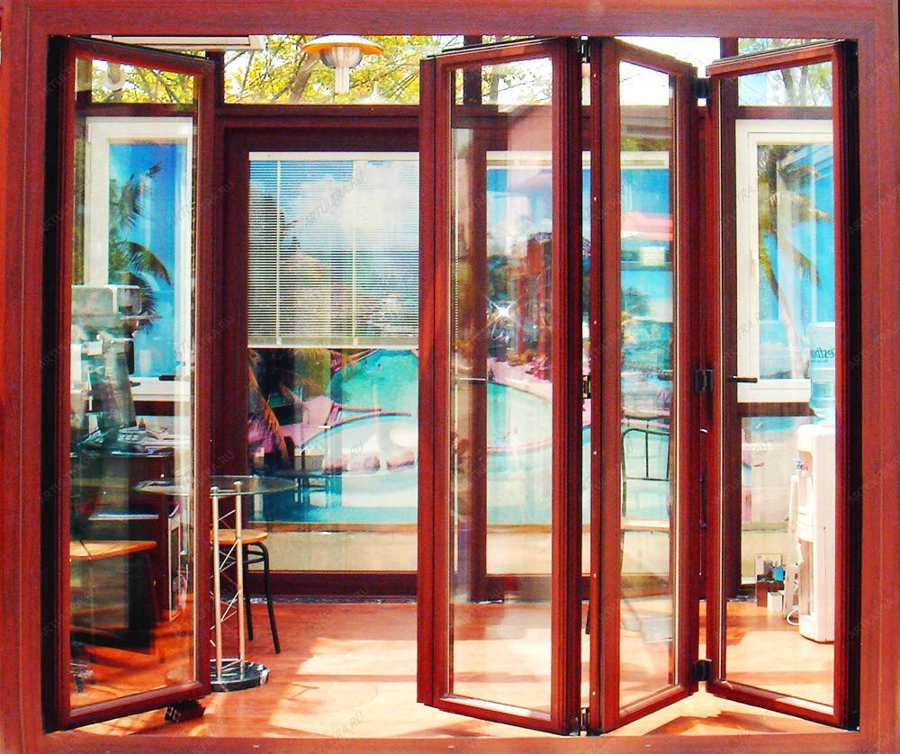 Традиционно, складные двери делают из 4 секций, но могут встречаться модели с дополнительными секциями, что очень важно в случае широких и неформатных проемов. Любое изделие складного типа гармонирует с существующим интерьером, который может только украсить красивая панель из дерева или другого материала с необычной отделкой или текстурой