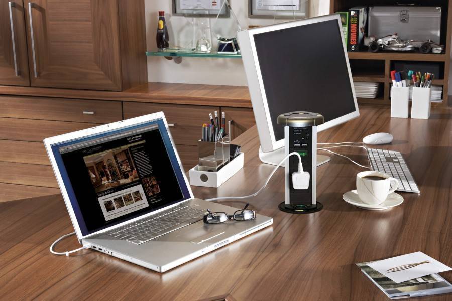 Когда речь идёт о розетке с поворотным механизмом, нужно чуть меньше движений. Она раскрывается почти что также, как и бардачок в автомобиле. Выдвижные встраиваемые розетки – это мудрая конструкция, которая нужна в каждом доме и на работе уместна.