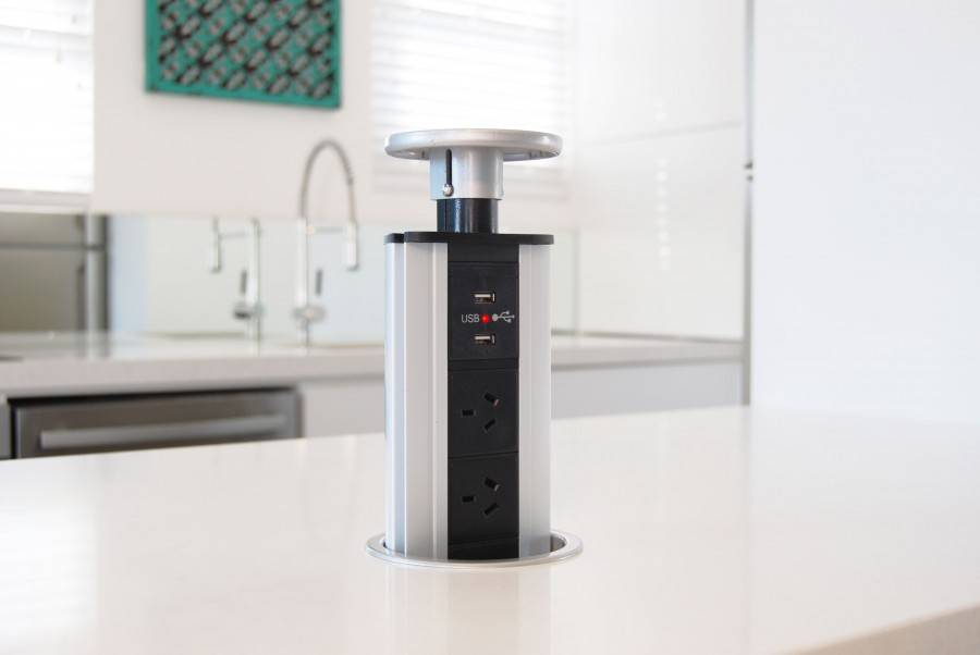 Их габариты могут быть разными, как и цвет, дизайн. Есть модели, в которые подключается не только стандартная вилка бытовых приборов, но и штекер от мобильного телефона, например. Разные гнёзда в одной выдвижной встраиваемой розетке – это удобно