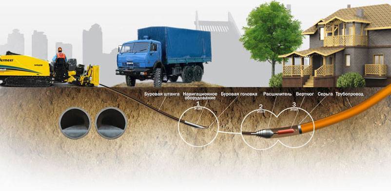 Скрытый способ прокладывания канализации иначе называется методом прокола.