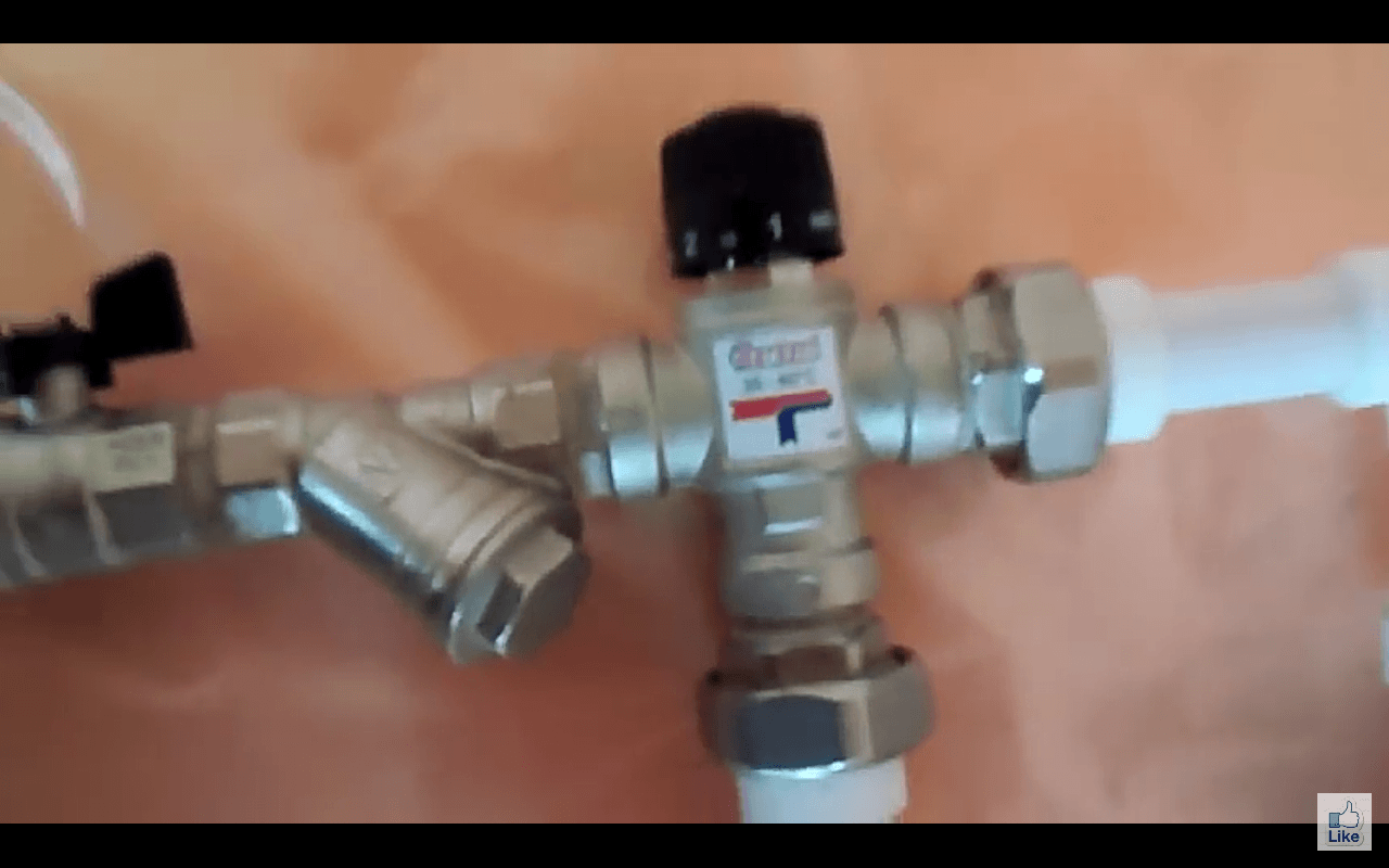 - После этого к потоку разогретой воды подмешивается холодная из третьего патрубка и температура воды на выходе из термоклапана остается неизменной, хотя нагрев теплоносителя на входе продолжается.