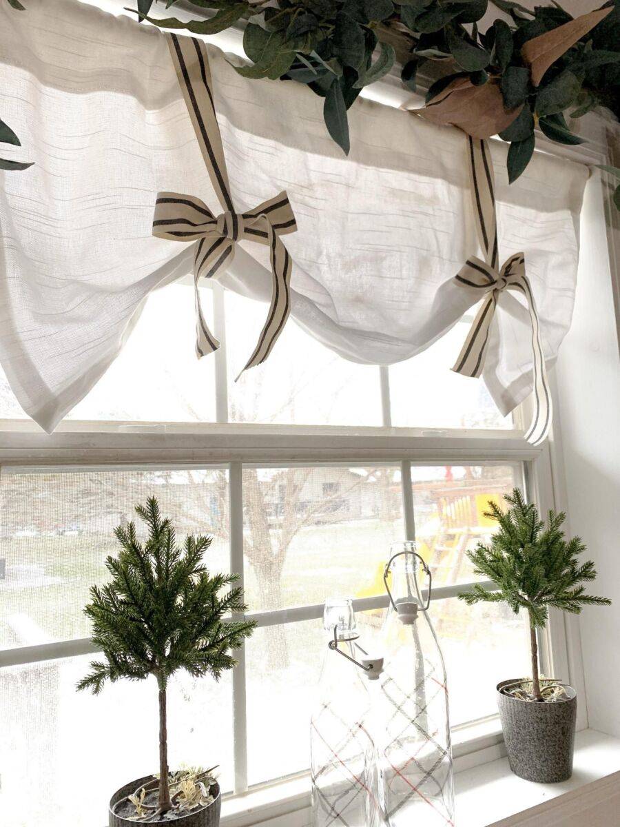 Их можно сшить самостоятельно. Они легко крепятся на маленький карниз или прямо на створку на натянутую леску или веревку.