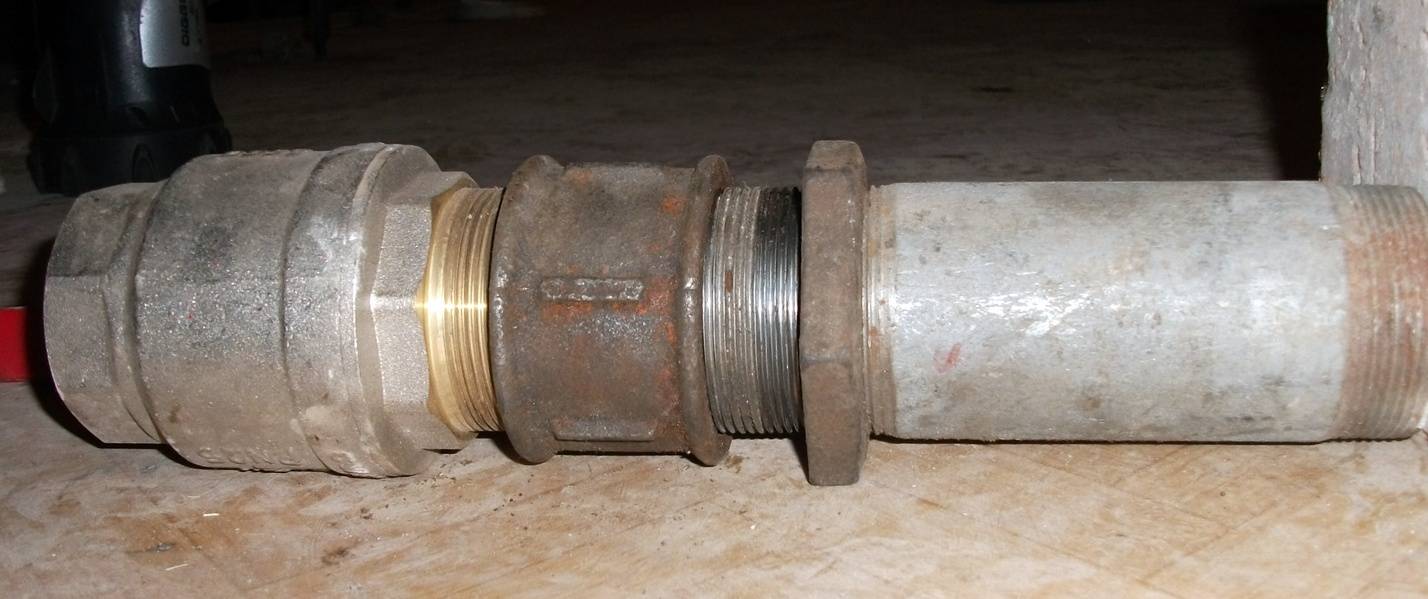 Все соединения выполняются только и исключительно на резьбах (нарезанных вручную или на токарно-винторезном станке) с использованием чугунных резьбовых фитингов;