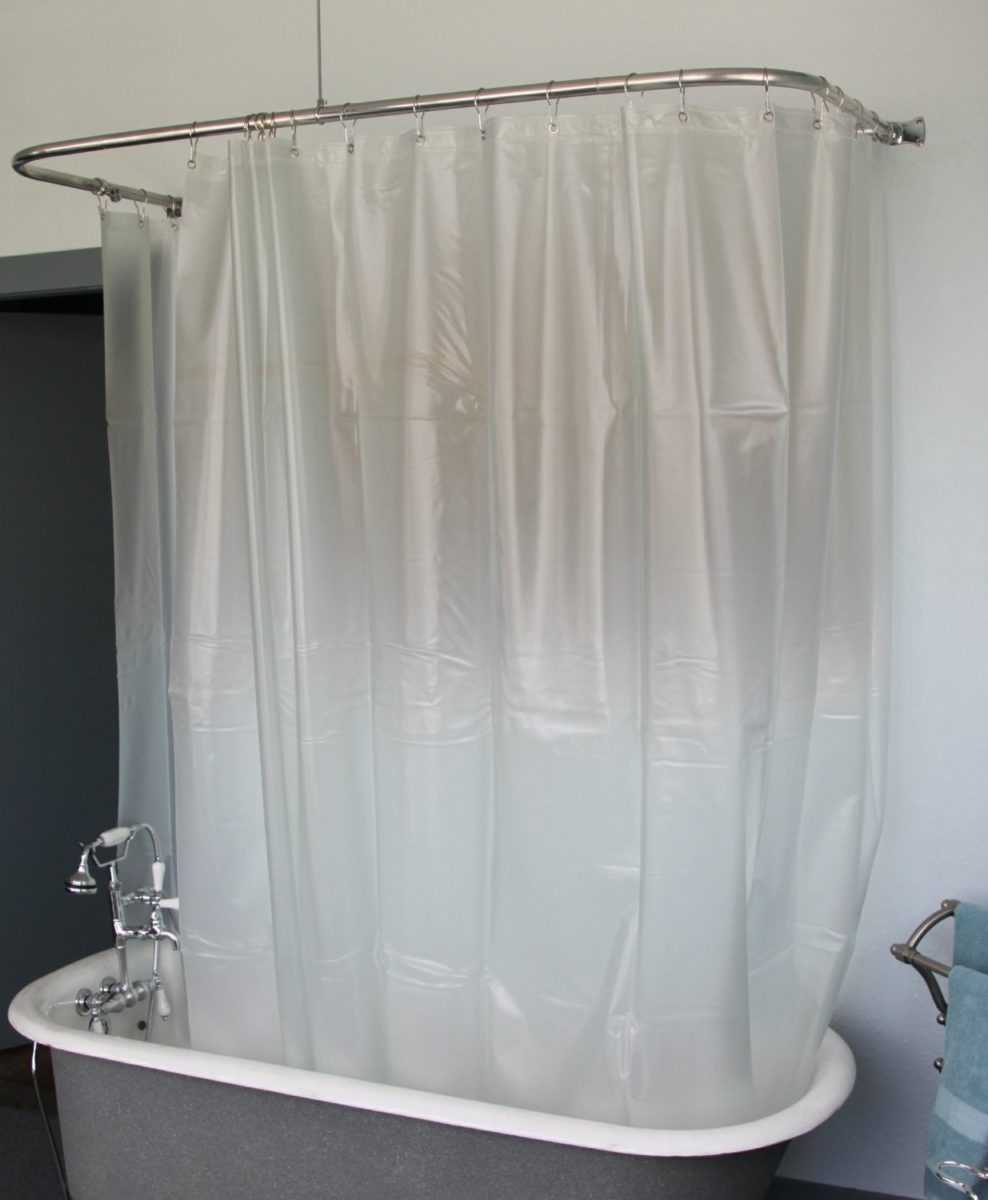 Некоторые угловые карнизы имеют форму дуги, то есть углы полностью отсутствуют, но несущая труба плавно изогнута. Такие устройства больше всего подходят для ванн асимметричной формы, находящихся в углу или в нише.