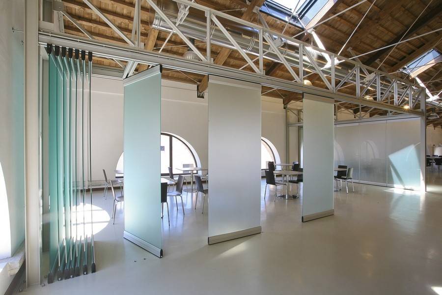раздвижные стеклянные стены, состоящие из независимых полотен, с помощью которых можно полностью отделить нужное помещение.