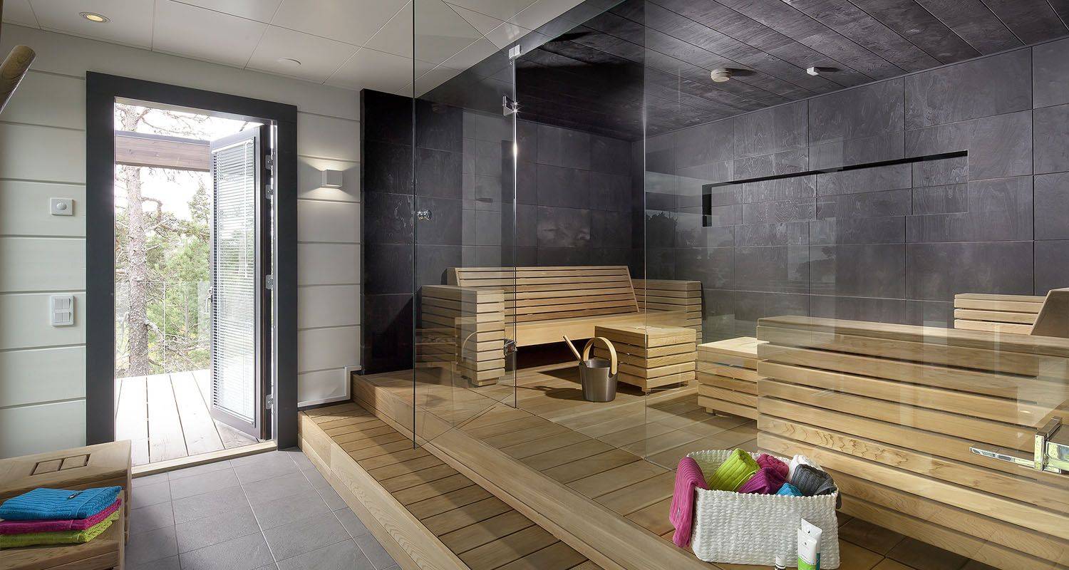 Очень часто бани хай-тек строят и оформляют таким образом, что внутри они выглядят не просто современно, а футуристично, что проявляется в первую очередь в интерьерах. Для помещений выбирают самую передовую и функциональную технику, которая не только делает парилку максимально удобной и комфортной в постоянной эксплуатации, но еще и определяют ее внутренний визуальный облик Обычно, люди, попадающие в хай-тек интерьер, находят в нем связь с интерьером космических кораблей. Здесь огромное количество техники, гаджетов, элементов управлениями за всем оборудованием и коммуникациями. Чтобы сделать помещение более функциональным, в комнатах устанавливают средства автоматизации и удаленного управления, которые, к примеру, позволяют из дома или со смартфона управлять установленными системами, подготовить баню к использованию без личного присутствия.