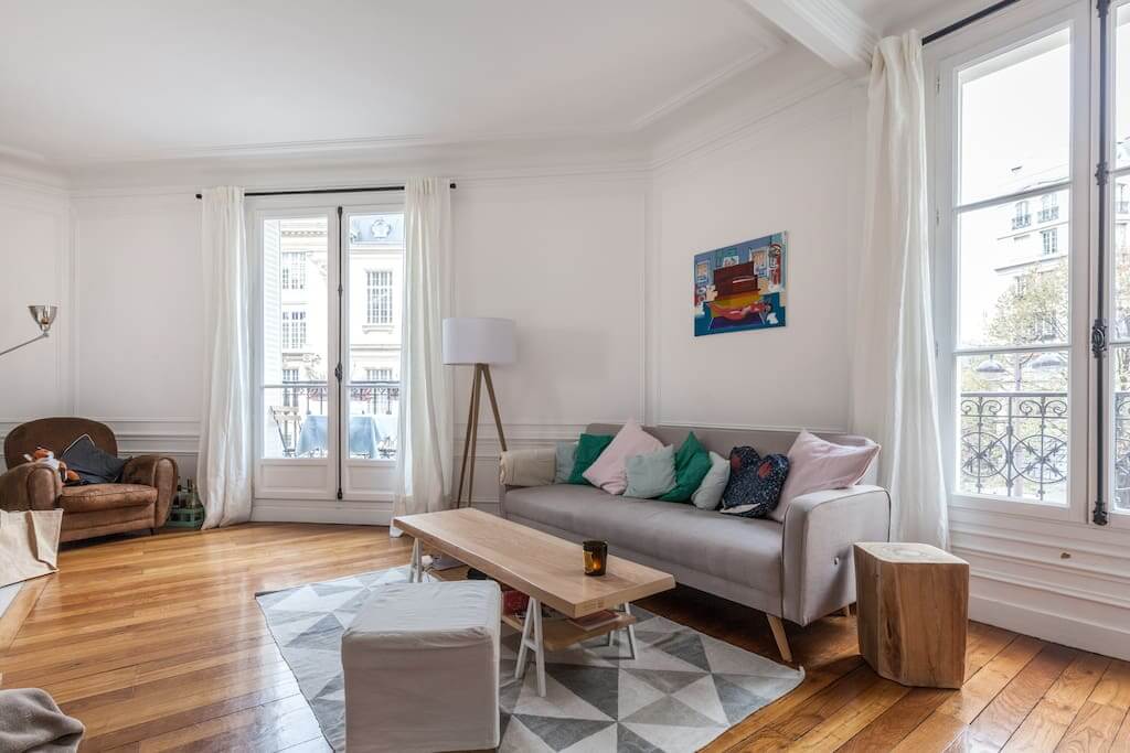 Пример правильно подобранной мебели для планирования интерьера гостиной в стиле скандинавский минимализм.