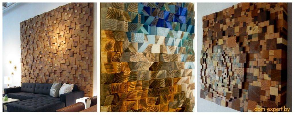 Если же подойти к оставшемуся мусору чуть более творчески — из древесных обрезков можно создать массу запоминающихся предметов интерьера. Например — великолепные настенные панно.