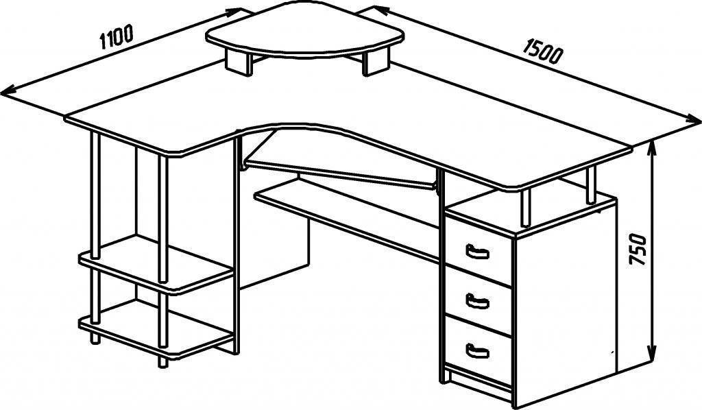 Основным размером любого стола, в том числе и компьютерного, служит его высота. Для человека среднего роста она обычно варьируется в пределах 700—750 мм. Для большего удобства в пользовании можно предусмотреть ножки с регулируемой высотой. Это будет особенно удобно, если столик предназначен для детей, которые имеют свойство расти. Тогда отвинчивающиеся по высоте ножки не позволят испортить его осанку. Высота полочки для принтера должна быть не менее 20 см, в таком случае на ней можно также хранить диски в стоячем положении.