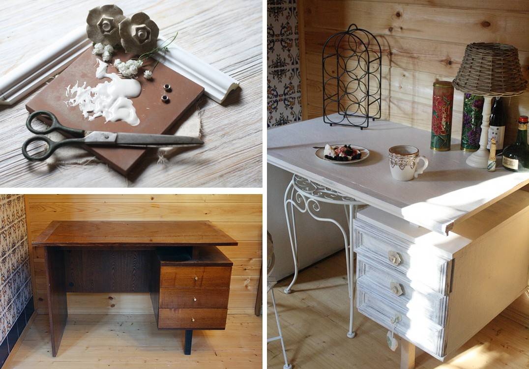 Если нет желания и времени заниматься изготовлением стола своими руками с нуля, можно отреставрировать старый, завалявшийся на даче.