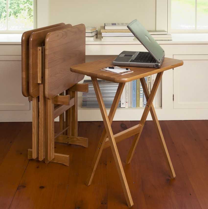 Ножки, почти всегда, делаются из стали, алюминия или дерева. Это не касается ситуации, когда весь столик сделан из пластика, в таком случае ножки тоже делаются из этого материала. Это нужно учитывать, думая о том, как сделать складной столик своими руками, ведь металл и пластик плохо обрабатываются без нужных приспособлений. Пластмасса и вовсе может сработать, только при готовой форме конструкции. В этом плане дерево отлично подходит для домашних вариантов.