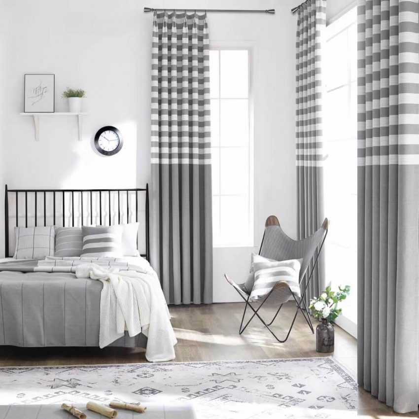 При выборе штор для спальни важно не гнаться за модными тенденциями и трендами, а прислушиваться к своим ощущениям и ориентироваться на свой личный вкус. Контрастная вставка в шторах – необычное оформление современных спален
