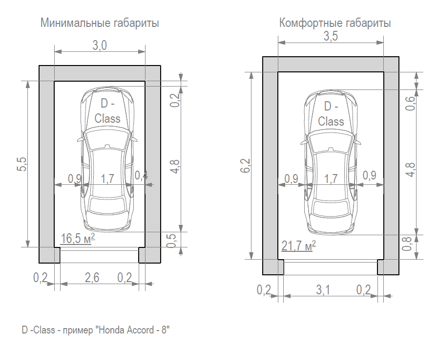 Минимальные размеры гаража в частном доме: высота — 2 метра, длина — 5 метров, ширина — 3 метра. Эти размеры отлично подойдут тем, кому нужно сэкономить место и деньги.